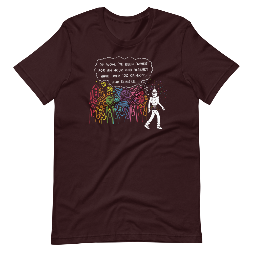 "Oh wow, I've been awake for an hour and already have over 100 opinions and desires."