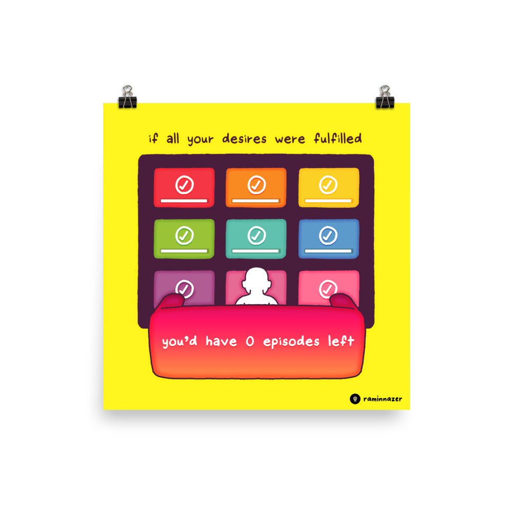 "If all your desires were fulfilled, you'd have 0 episodes left."